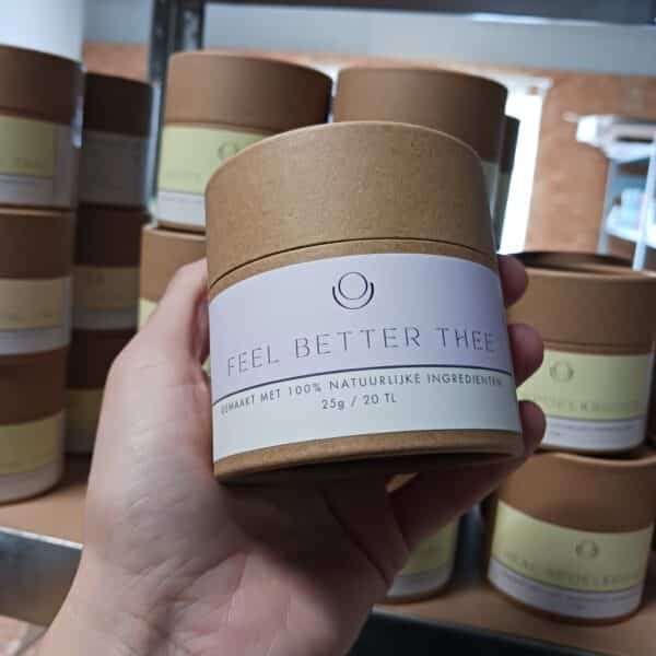 De Feel Better Thee is een frisse kruidenthee die speciaal is samengesteld voor de zwangerschap, vanaf het tweede trimester. De thee kalmeert de maag, helpt bij zuurbranden en misselijkheid dankzij de eigenschappen van gember, citroen en kruizemunt. Kamille ontspant je lichaam en geest en helpt ook bij maagklachten.