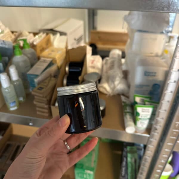 Glazen potje van Natural Heroes voor het bewaren van je zelfgemaakte crèmes, zalfjes of olie. Het donkere glas weert UV licht waardoor de inhoud beter bewaard blijft.