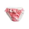 De Vimse herbruikbare en wasbare zwemluier is een lekvrij en kleurrijk zwembroekje voor baby’s en peuters. Het zwembroekje met roze walvissen en zeedieren bestaat uit een zachte binnenlaag die lekvrij is in geval van kleine ongelukjes. De buitenkant is een rekbare zwemkledingstof gemaakt van gerecycled polyester en elastaan. Deze roze zwemluier heeft een vrolijk ruche randje rondom. De knoopsluiting aan de zijkant vergemakkelijkt het verschonen.
