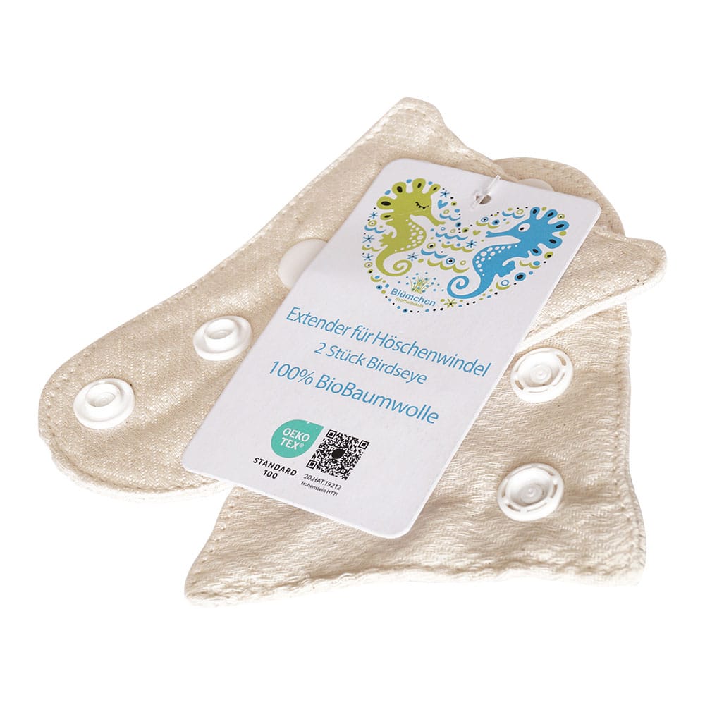 Deze luierverlenger is geschikt voor de gevormde oogjesluier van Blümchen. Hiermee kunnen de luiers breder worden gemaakt voor grotere kinderen.