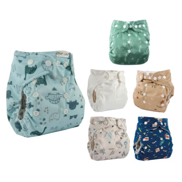 De Snap2Fit van Popolini is een ademend, waterdicht overbroekje voor het All-in-2 systeem. Je gebruikt de Snap2Fit in combinatie met boosters, hydrofiele luiers, prefolds of andere inleggers die je makkelijk in de praktische flappen aan de binnenkant steekt. Op deze manier kan je het absorberend vermogen eenvoudig worden aangepast aan de veranderende behoefte van je baby. De maat van de Snap2Fit kan worden aangepast met de drukknopen aan de voorzijde. Deze luier sluit ook met drukknopen, maar met apart verkrijgbare Snap-on-Velcro verander je de sluiting in een klittenbandsluiting. Voordeel van deze luier is dat hij bijna de gehele luierperiode dienst kan doen. Nadeel is dat deze luier minder geschikt is voor de nacht omdat er meer kans is dat je kindje zal doorlekken.