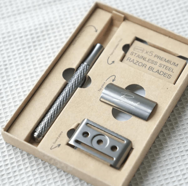 Met de Biowust Safety Razor maak jij van scheren een bewust moment voor jezelf én de planeet. Waarom zou je blijven hangen bij wegwerpmesjes die je huid irriteren en razendsnel bot worden? Met dit duurzame scheermes van messing investeer je in jezelf en de planeet. Messing is niet alleen sterk en slijtvast, het geeft ook een luxe gevoel bij elke beweging. Je kiest hiermee voor een tool die jarenlang meegaat en er ook nog eens tijdloos uitziet in je badkamer.