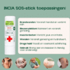 Smeer INCIA SOS-stick op de huid. Indien nodig kun je de balsem in de huid inmasseren. De balsem geeft snel verlichting. Je kan hem zo vaak gebruiken als je wilt.