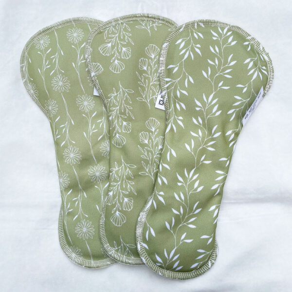 De verbanden blijven dankzij de zandlopervorm stabiel in het slipje zitten zonder te verschuiven en om te vouwen. De absorberende kern wordt geleidelijk dikker naar het midden toe, zodat de randen van het maandverband dun zijn en nauwelijks zichtbaar of voelbaar zijn. Het materiaal is zacht en voelt koel en luchtig aan. De kern van hennep en katoen is zeer zacht, stabiel en absorberend. De groene kant ligt tegen je ondergoed en de witte, zachte kant draag je tegen de huid.