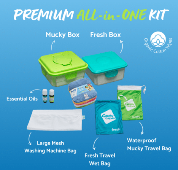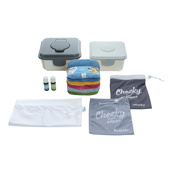 Deze Premium All-In-One Kit van Cheeky Wipes is een complete set met wasbare billendoekjes, wetbags, bewaarboxen en geurolie. Wasbare billendoekjes zijn een duurzaam alternatief voor wegwerp billendoekjes. De doekjes zijn geschikt voor alle huidtypes en natuurlijk niet alleen voor de billetjes een uitkomst: ook handig voor bijvoorbeeld plakkerige handjes. Met de wasbare babydoekjes spaar je niet alleen het milieu, je bespaart jezelf ook honderden euro’s per luierperiode uit!
