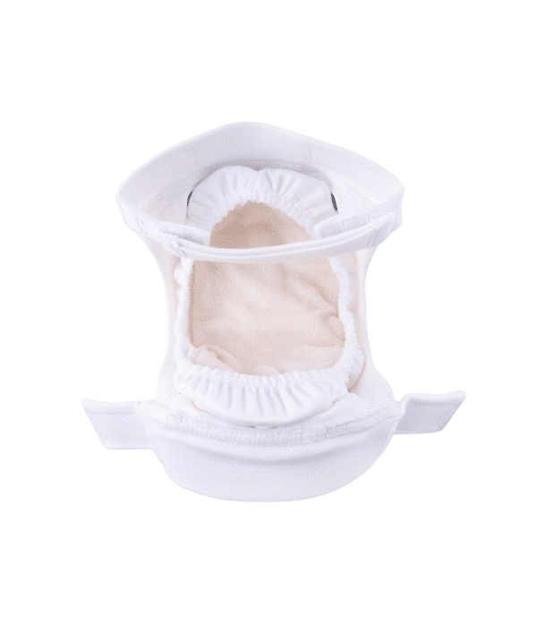 4. Bellystrap: buikbandje om de EasyFree bij Baby Zindelijkheidscommunicatie te gebruiken. De buikband kan aan de haakjes van de overbroek worden vastgemaakt. Hierdoor kan de luier met één hand worden geopend en gesloten terwijl de baby boven een wasbak of toilet wordt gehouden.