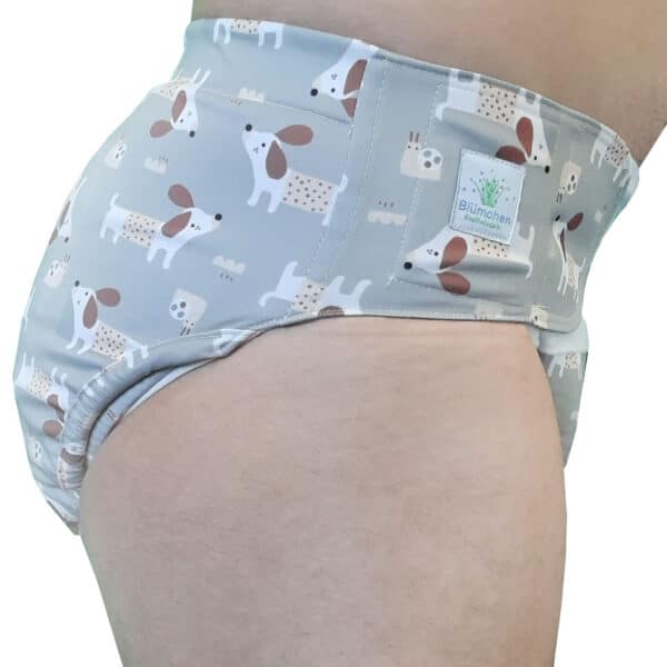 Deze Blümchen wasbare luier is geschikt voor kinderen vanaf ongeveer 8 jaar tot volwassen leeftijd. De waterdichte slip heeft een zachte voering en wordt geleverd met een absorberende microvezel inlegger, die met drukknopen in de slip wordt bevestigd. De dubbele elastieken langs de benen garanderen een goede pasvorm en voorkomen lekken. De luier sluit met brede klittenband zodat hij een tijdje mee kan groeien bij opgroeiende kinderen.