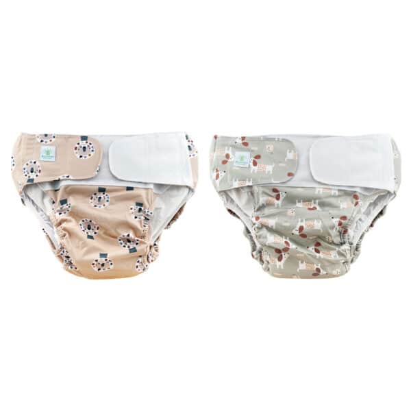 Laat de luierbroek nooit weken, anders zal de waterdichte laag loskomen.
