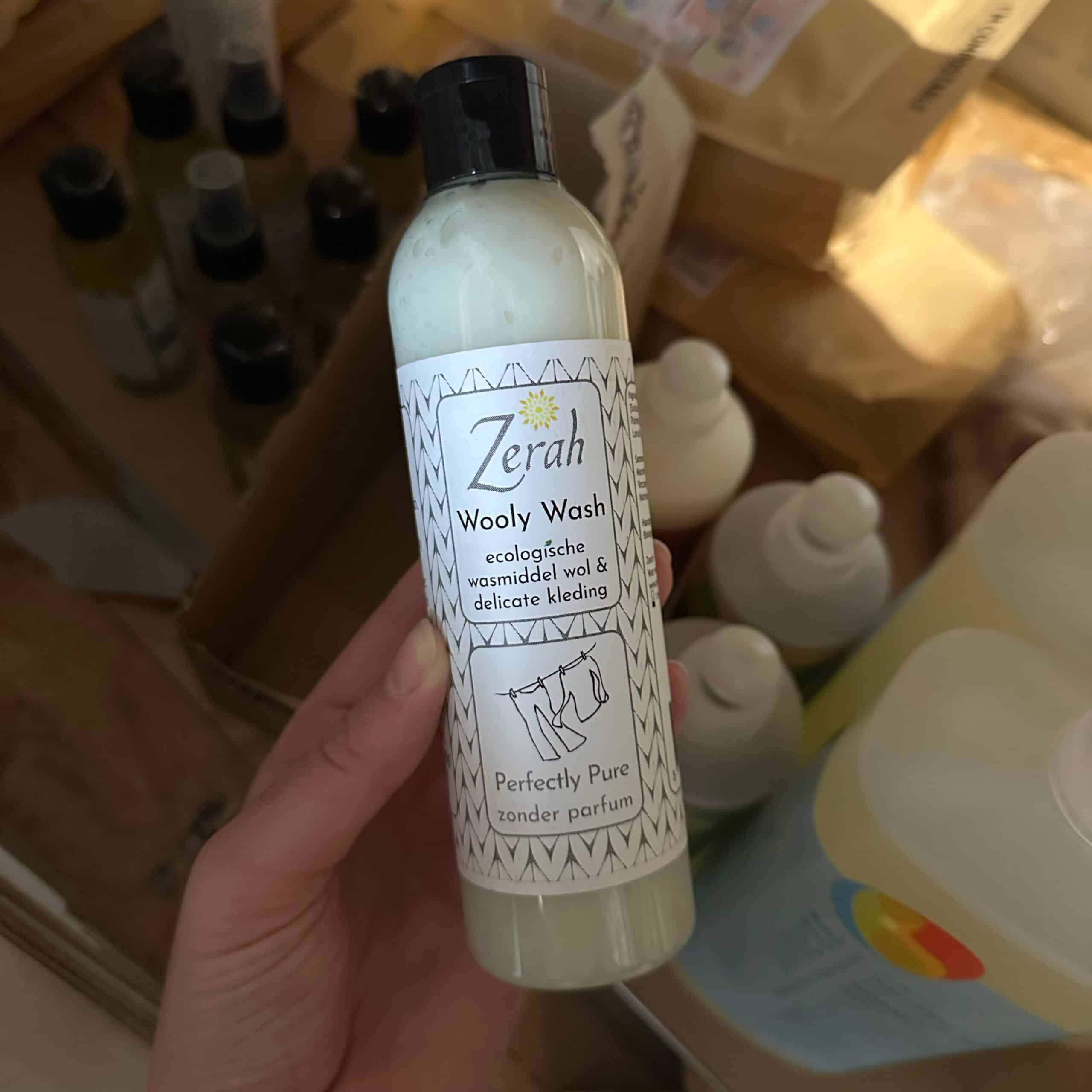 Wooly Wash Perfectly Pure van Zerah is een ecologisch wasmiddel voor wol en delicate kleding. Het bevat Marseille zeep en lanoline. Het verzacht je kleding en de lanoline zorgt ervoor dat je wollen luierbroekjes en andere kleding in goede conditie blijven. Bovendien maakt lanoline wollen kleding antistatisch.